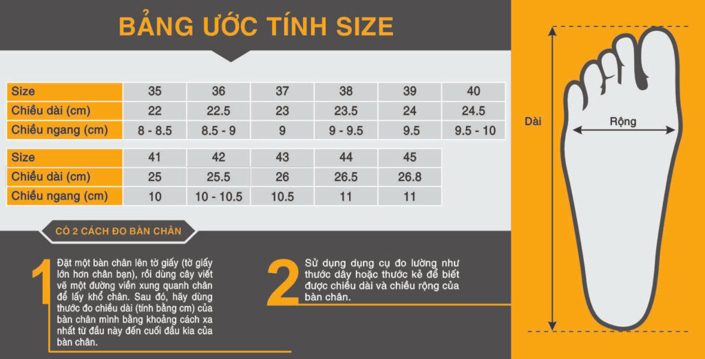 Bảng đo size giày